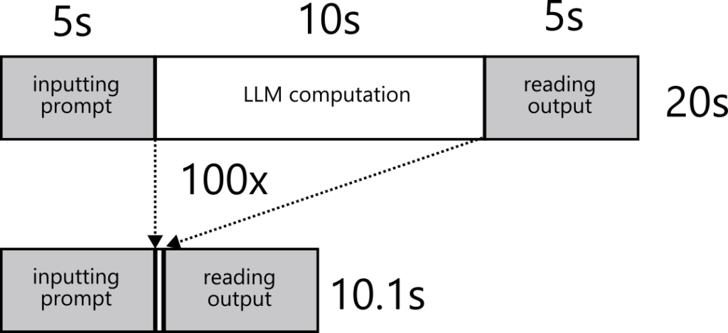 True, the performance and quality of LLMs are improving daily. However, this problem will not disappear. This is due to Amdahl’s Law. Amdahl’s Law is a principle in computer parallel processing stating that the overall speedup of a program is limited by the fraction of the program that cannot be parallelized. Interaction with an LLM consists of three elements: